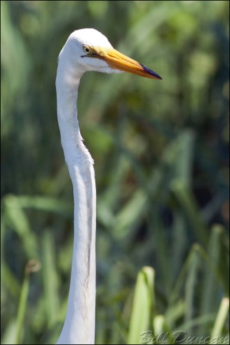 In bird photography nothing beats a typical, perfect, “documentary” style shot. You know, the photograph in which you were actually able to get close enough to your subject to come close to filling the frame, acheive a perfect exposure and obtain sharpness that will make your eyes bleed? That is definitely nice, but just as much, I appreciate the “bird as art” image; the photograph in which, with intent or not, you are able to show the subject and/or its environment in a way that looks different than a mere documentary of what the species “looks like”. The image above of a Great Egret is probably somewhere in between these two image styles. I wanted to exaggerate the length of this bird’s neck by cutting it from its body. The shallow DOF separates the bird from the background to further emphasize the subject and its lengthy proportions.