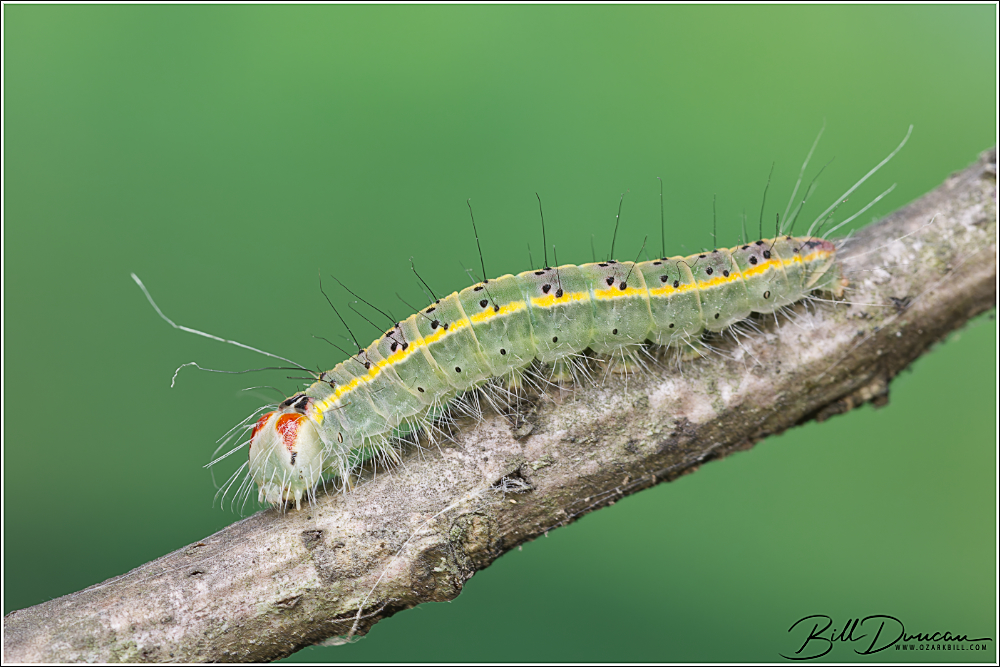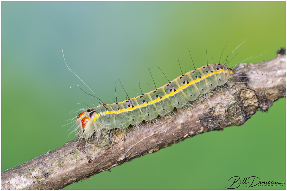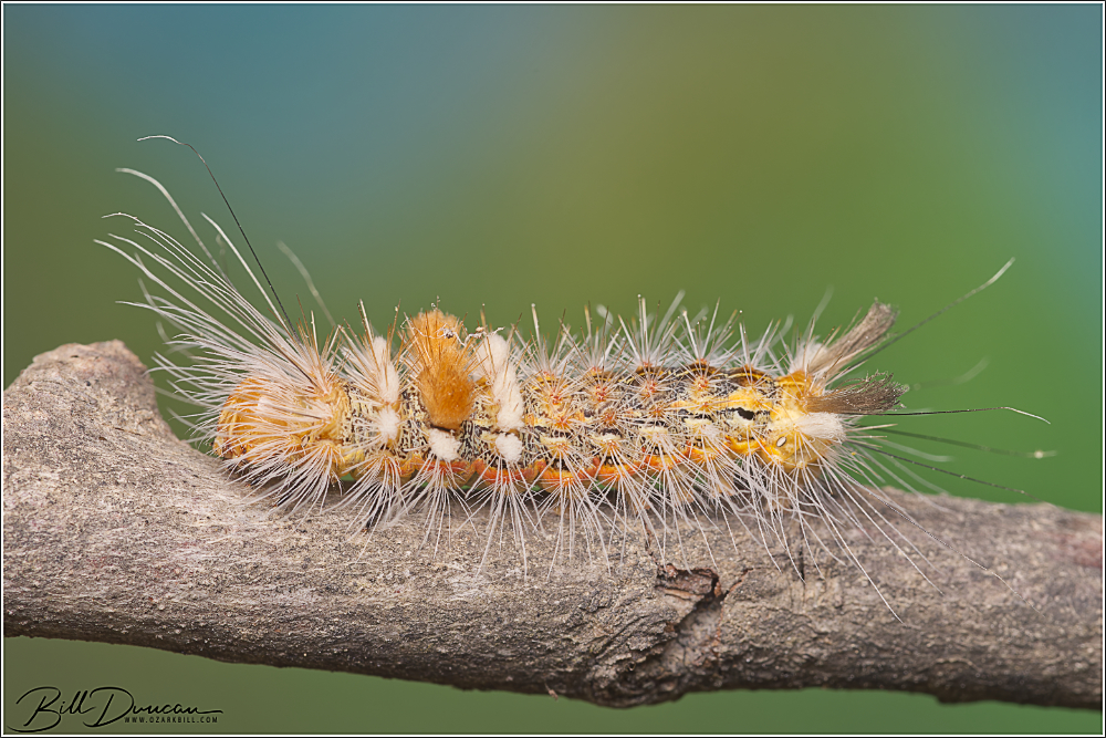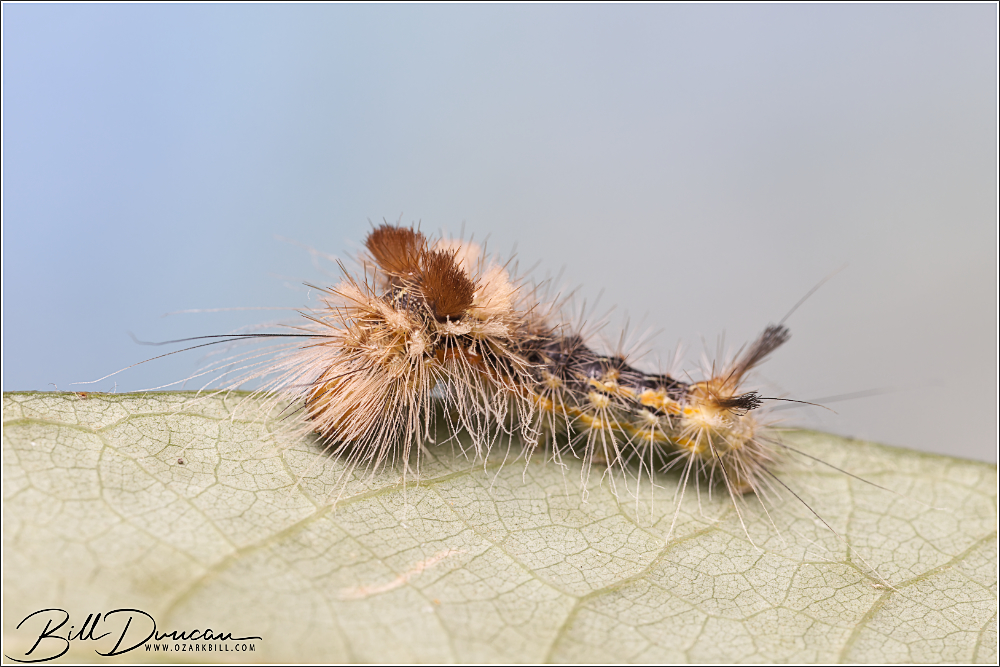 Notes: Batesian mimicry, a form of mimicry wherein a harmless species has evolved to imitate the warning signals of a harmful species in order to benefit from these signals’ tendency to deter their mutual predators, is common among adult moths and butterflies. However, it has been found to be rare in caterpillars. The yellow-haired dagger seems to be a rare case of this defense in caterpillars as it seems to mimic tussock moth caterpillars (Dasychira, Orgyia) in both appearance and behavior.