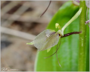 This male mosquito was observed feeding at the nectary of this Liparis liliifolia flower. However, he was too small to come into contact with the column and is not considered an efficacious pollinator.