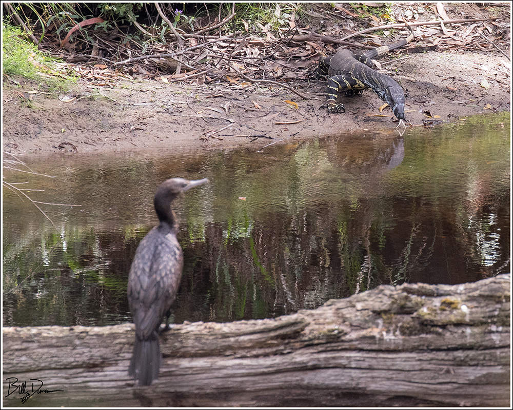 A short ways from the main road, we came across a small grotto. Looking closely with a light, I was able to find at least five cave salamanders resting on different shelves. After about 15 minutes on my knees, working out how to best light and photograph these guys, I finally focused my attention towards the back end of this small cave. There I noticed a medium-sized cottonmouth with its head raised that was apparently watching me the entire time, about a foot or so behind the salamanders.