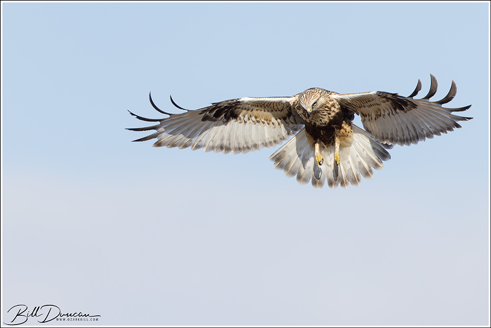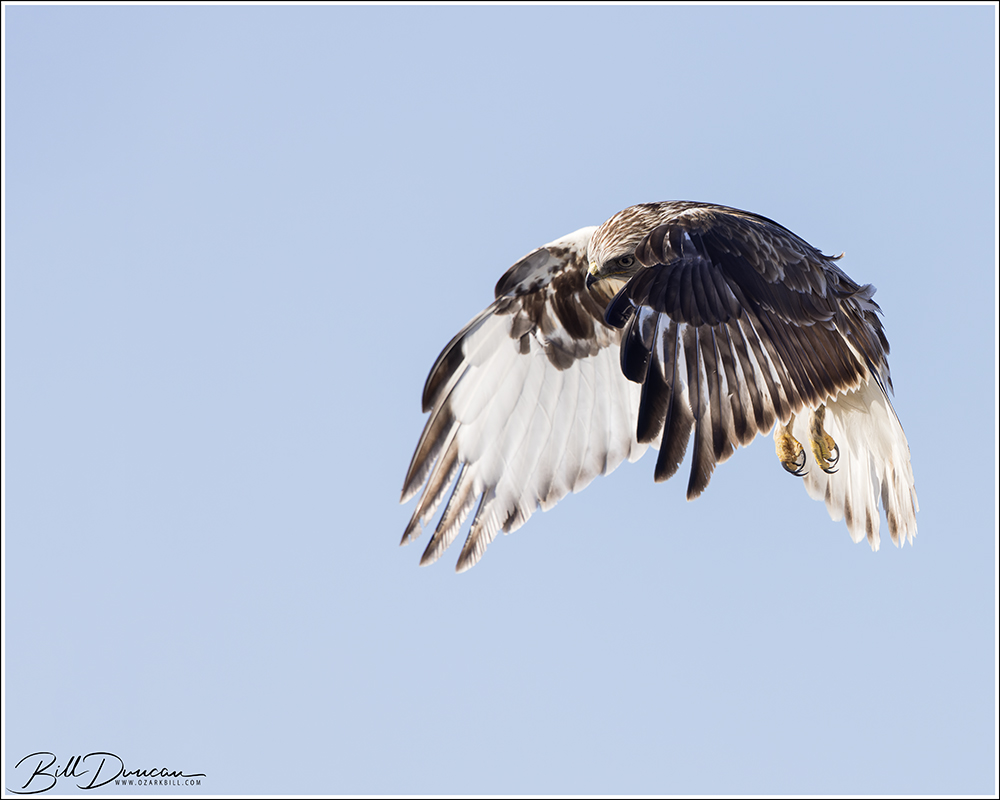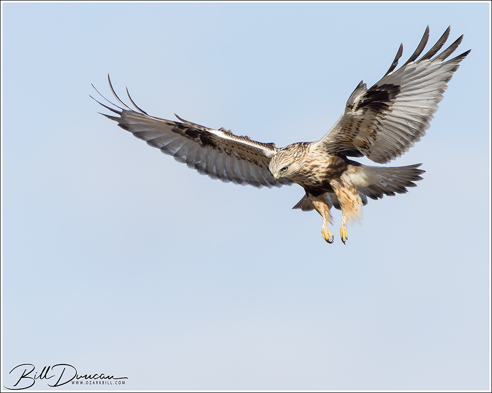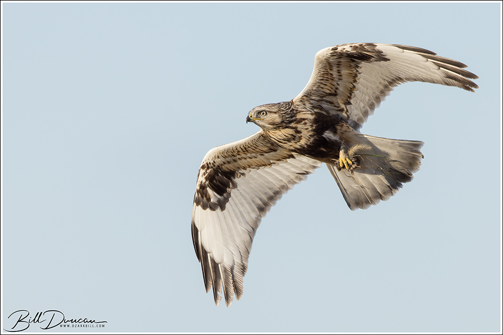On an early mid-February morning Miguel and I hit one of our favorite winter birding locations in St. Charles County to see what luck we could have. We knew a RLHA or two had been reported and photographed by multiple folks and we had our hopes high. Nothing much was showing up on this frigid morning but I thought to check a specific area that was off the beaten path and had a history of holding birds that wanted to get away from the busy roads and throngs of gawkers. That is when we ran into an individual RLHA of our dreams. We wound up spending hours with this cooperative bird despite freezing fingers, toes and tips of our noses. We simply stood outside our vehicles and watched as the bird perched, hover-hunted, soared and fed, all the while seeming oblivious to our presence. The following video and images are the results of this day.