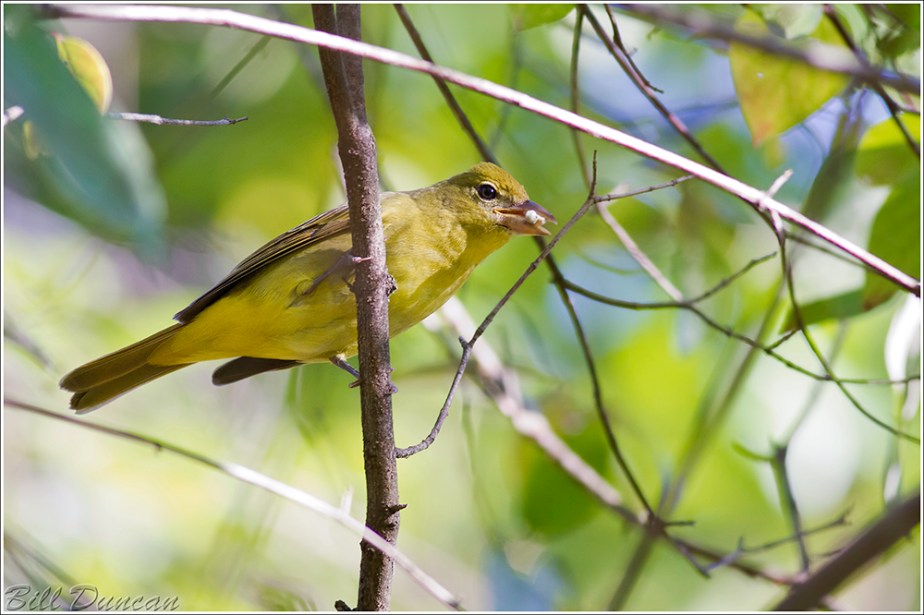 What’s that? Getting bored with yellow? Okay, let’s change things up a little and look at this Scarlet Tanager male that we found within the forest canopy. With a song similar to the Summer Tanager, the chip-burr call note of the Scarlet Tanager is most diagnostic. We were somewhat surprised to find a couple of Summer Tanagers singing in the open areas of the glade near sunset later this evening.