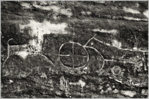 The petroglyph in the image above might be my favorite. I am of the opinion, I think, that the face seen on the head of this bird is likely do to the changes in time that this spot has seen. However, once you see the the face, looking down and to the left of the frame, it is impossible to not wonder if this was a deliberate carving. If so, this is one intimidating form.