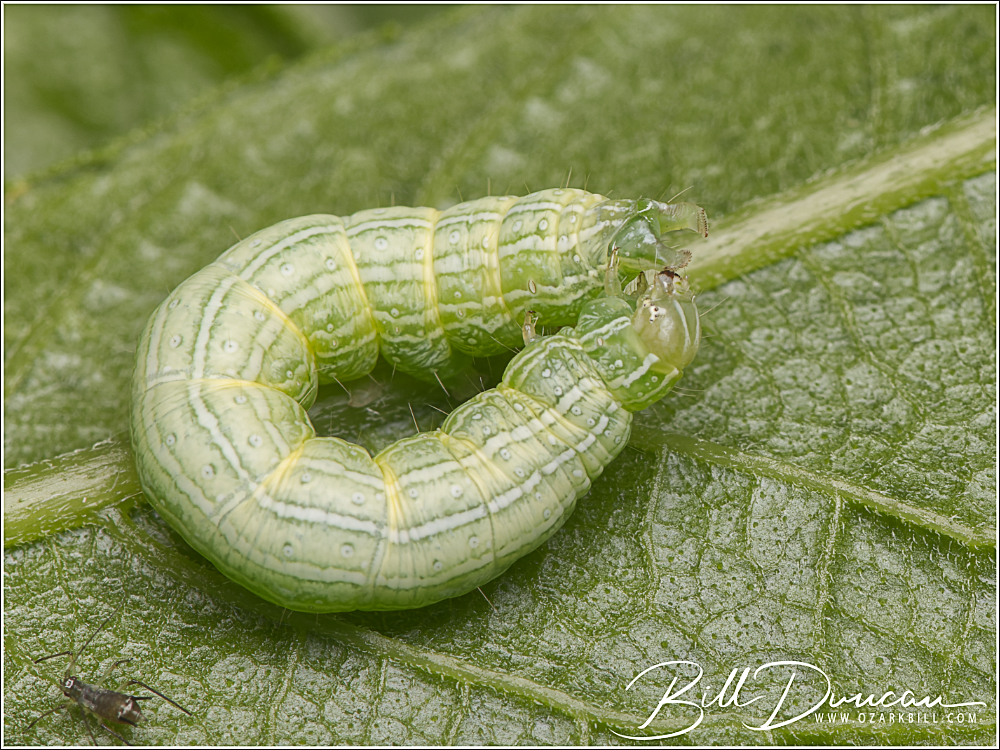 Today’s featured caterpillar is the Noctuid, Ogdoconta cinereola, or “common pinkband groundling.” This one was found in early July at St. Francois State Park on wingstem (Verbesina).
